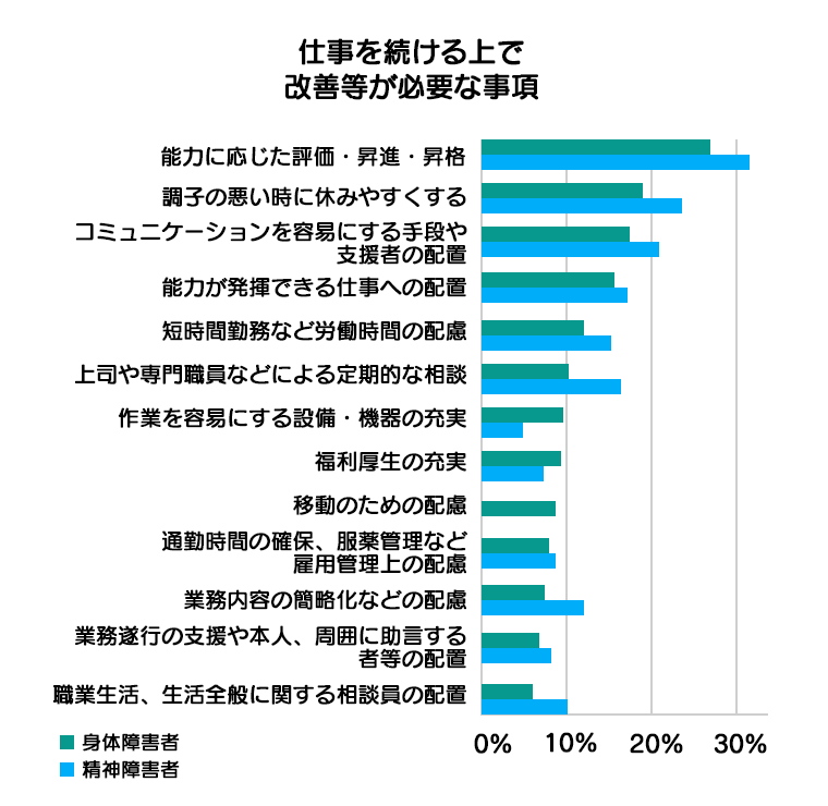 障害者が働き続ける上での課題