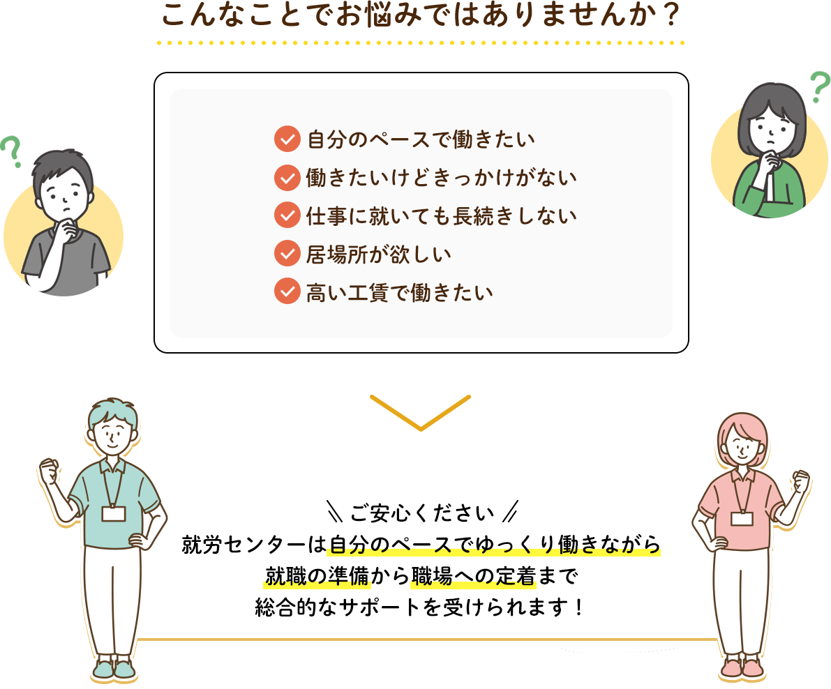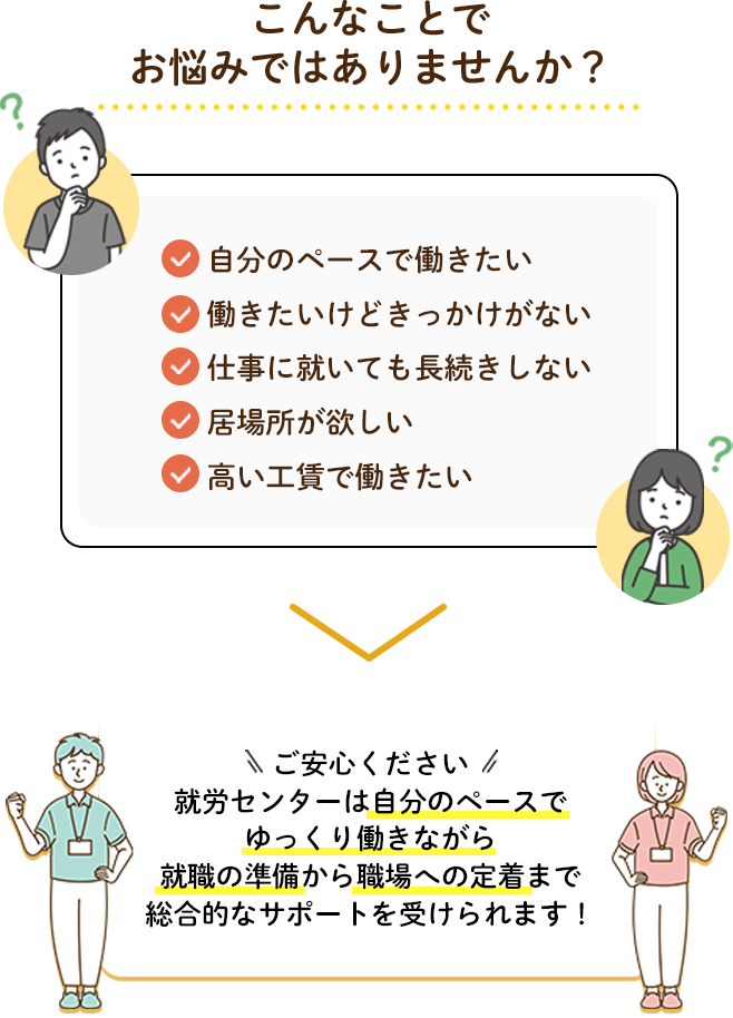 「居場所作り・自分のペースで働きたい」を応援しています。
